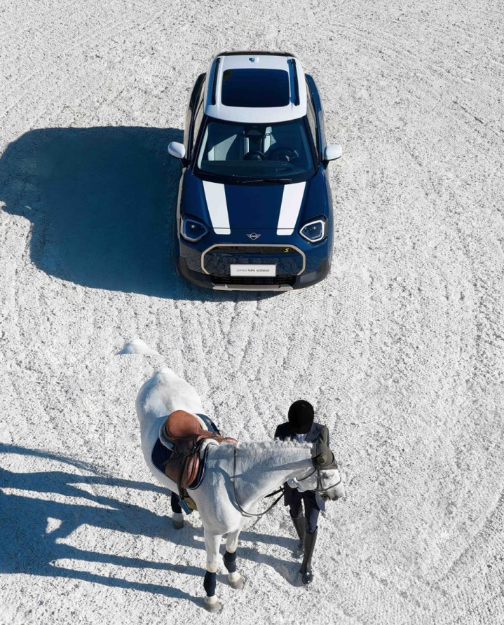 首先得说,MINI这牌子,从来就不缺关注度,尤其是很多小姐姐们的心头好。这款盛装舞步限定套装,在外观上确实花了不少心思。它用了专属的皇家蓝车漆,配上骑士白的拉花,再加上哑光金色的前脸饰条和专属的香槟色复古“大饼”轮圈。