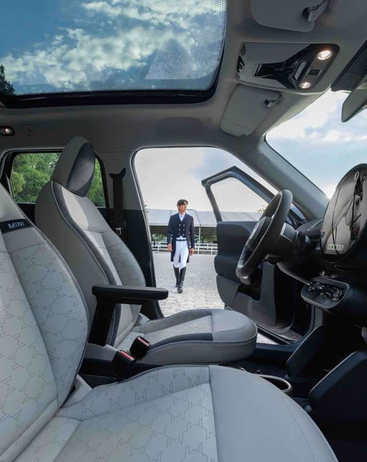 坐进车内,MINI Aceman的内饰设计感依然很强,尤其是那个家族标志性的圆形OLED中央显示屏,成为了车厢内部的视觉焦点。盛装舞步限定版采用了浅灰色内饰与外观颜色呼应,并大量采用了创新环保材料,如环保织物和Vescin素皮材料。这在当下注重环保的潮流下,算是个加分项。但是,如果你是个追求科技感和丰富配置的消费者,MINI Aceman可能会让你有些犹豫。即便是这款限定版,根据MINI ACEMAN车系的一贯表现,像360度全景影像、L2级辅助驾驶系统这类在不少同级车上已经开始普及的配置,在它身上可能依然难觅踪影,或者需要额外付费选装。